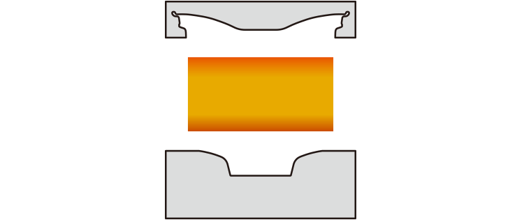 素材のアルミ合金に強大な圧力を加えながら成型する製法です。 金属組織が分子レベルで高密度に均一化されることで強度がアップ、その分薄く軽くすることができます。