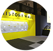 ダンロップが誕生した1888年から現在に至るまでの歩みを、年表として展示。各年代のイラストにタッチすると、アニメーションが浮かびあがり、イラストが動きだす仕掛けに。ダンロップがいかにタイヤの歴史を切り拓いてきたか。来場された方々も、楽しみながらご覧になっていました。