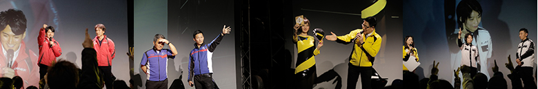 STI」で全日本ラリー選手権に参戦する勝田選手と足立選手が登場しました。話は昨シーズンの振り返りから。勝田選手は「苦労の連続で、チャンピオンはとれませんでしたが、開幕戦のツール・ド・九州と第3戦の若狭ラリー、最終戦の新城ラリーは何とか優勝できました。勝てたラリーはDUNLOPタイヤとクルマのセッティングが、路面とよくマッチングしていましたね」とコメント。また、「とくにツール・ド・九州はDUNLOPが“マイスター”と呼ばれるほど強いところ。負けるわけにはいかず、10連覇を果たせてホッとしています」と付け加えました。そして2016年シーズンに向けては、勝田選手が「全日本のチャンピオンを奪還する」、足立選手が「もっとラリーの観戦者が増えるように活動していきたい。選手としてもより一層がんばります」と意気込みを語りました。