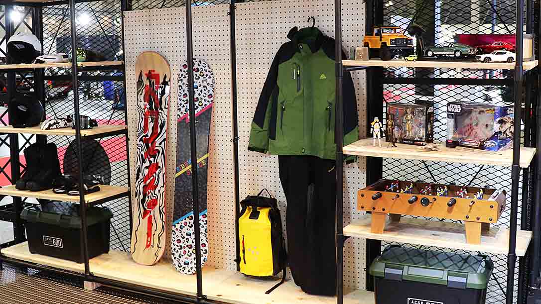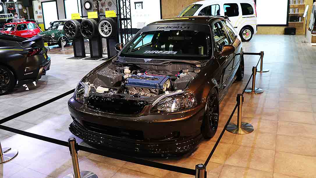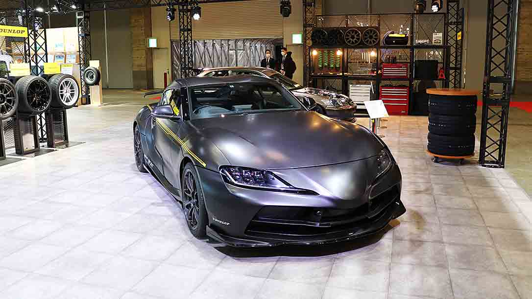 チューニングゾーンでは、東京オートサロン2023に合わせて特別ラッピングを施したトヨタ GRスープラとチューンカスタムされたホンダ シビックを展示。クルマいじりが大好きな大人が好むガレージをより魅力的にしました。