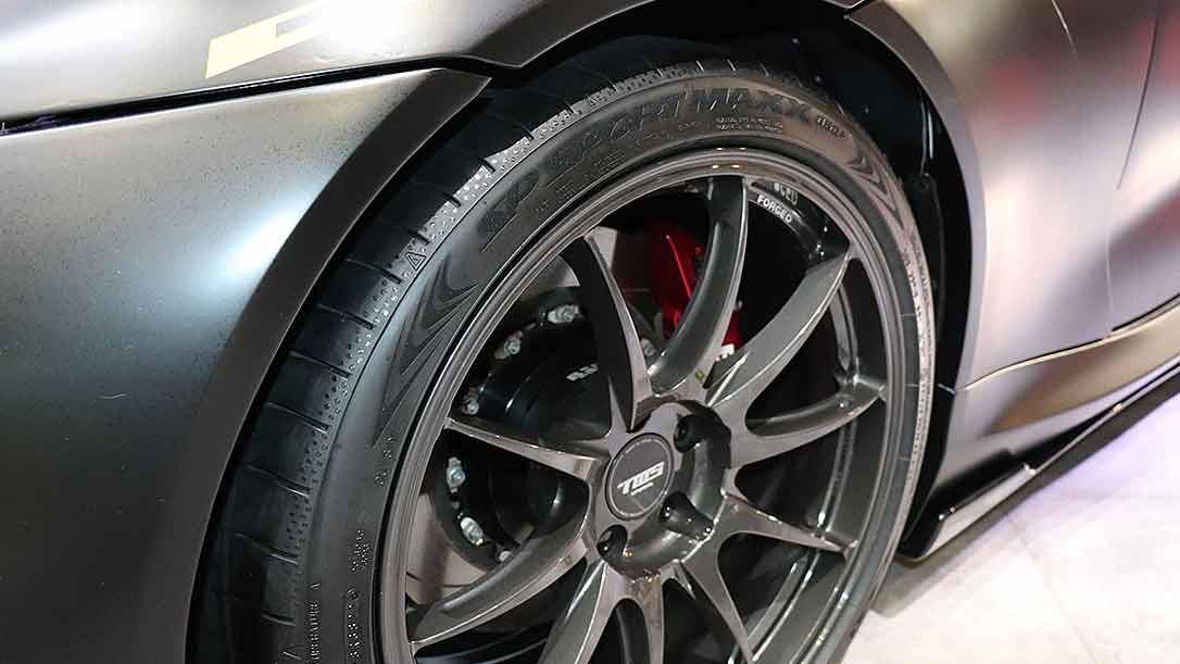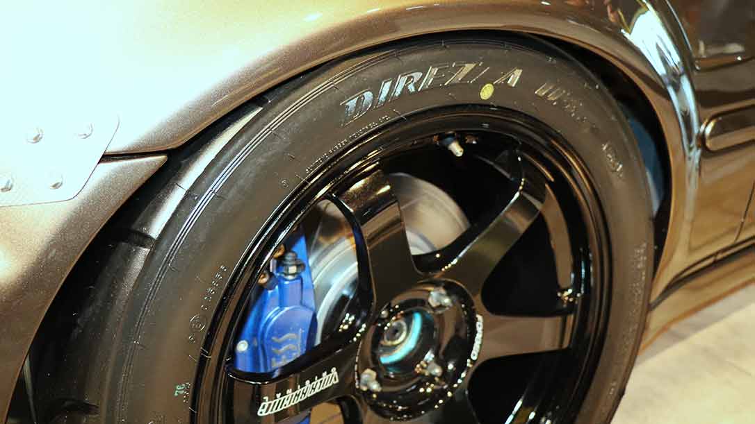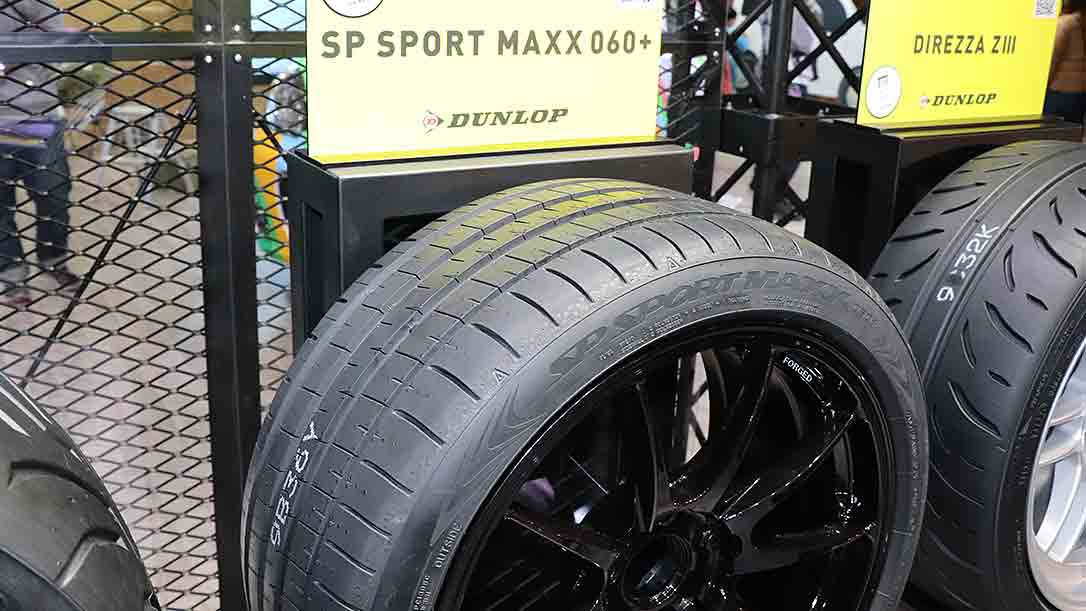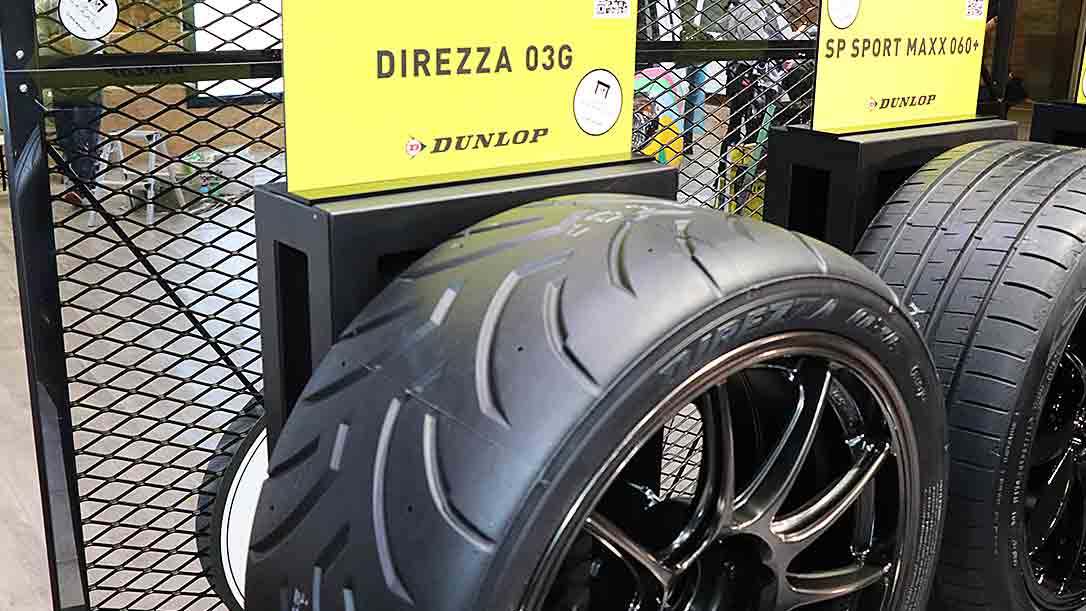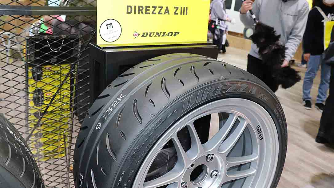 チューニングゾーンには、魅力的なスポーツタイヤシリーズを展示。「DIREZZA 03G」「SP SPORT MAXX 060+」「DIREZZA ZⅢ」の3本を展示。走り好きの大人に足を止めてご覧いただけました。