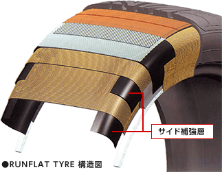 ダンロップでは、早期からランフラット性能を備えたタイヤの研究開発に着手し、1970年に世界で初めてランフラットタイヤを実用化しました。安全性の向上と、スペアタイヤ不要化による省資源・軽量化といった環境性能の向上を同時に実現できることから、さまざまな車種に採用されています。