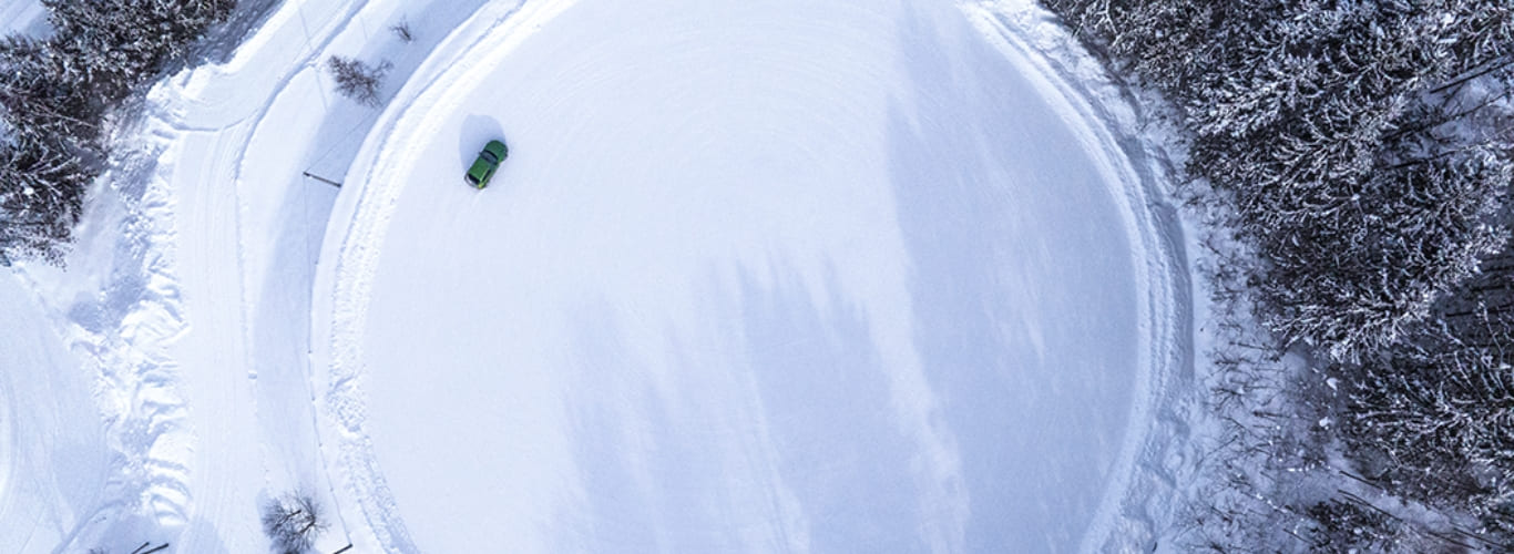 北海道にあるテストコース。冬タイヤの様々な課題を見極め、相反を乗り越えるために厳しい試験が繰り返されています。